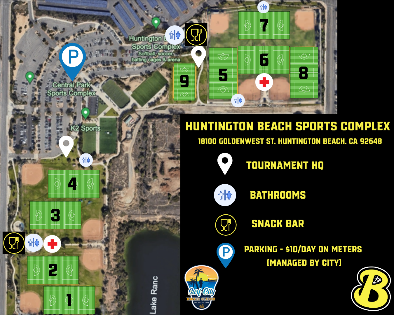 Please be aware of the Surf City Marathon event on Sunday in the area that has a road closure close to the fields. You can come from the “Gothard St entrance” side of the park. Please also know that people may be parking in the HBSC lot as well. We cannot control this.
